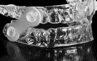Un dispositivo de avance mandibular, o DAM, es un aparato dental hecho a medida, similar a un protector bucal doble, que el paciente utiliza durante la noche. Su función principal es mantener la mandíbula en una posición adelantada de forma controlada, generalmente unos pocos milímetros, para evitar el colapso de la vía aérea superior durante el sueño.
